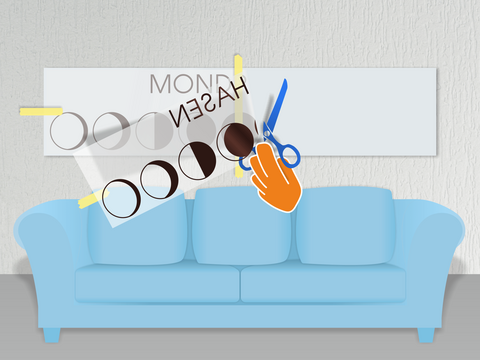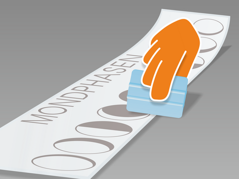 Wanddesign flach auf glattem Untergrund ausrollen und mit Rakel (oder Scheckkarte) fest über Vor- und Rückseite streichen.