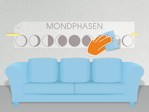 Bitte ziehe für das Aufbringen größerer Wandtattoos eine zweite Person als Hilfe hinzu.