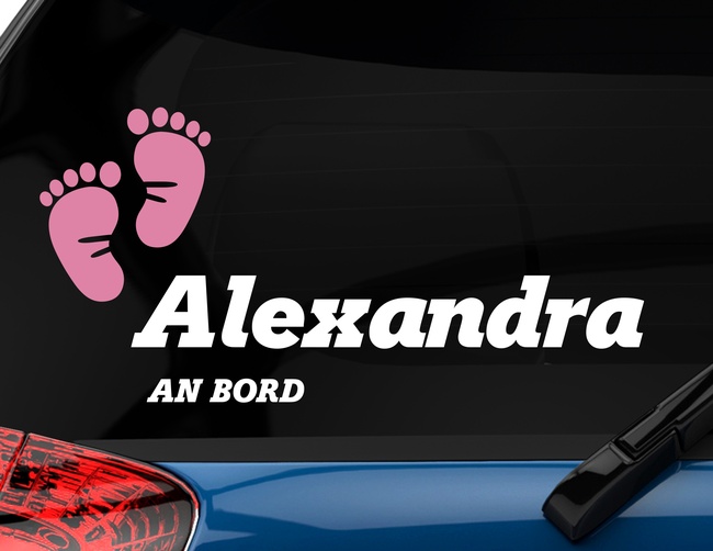 Zauberhaft und zuckersüß, der Autoaufkleber „Footsteps“ mit Wunschnamen. Natürlich für Mädchen und Jungen geeignet, denn die Farbe ist frei wählbar.