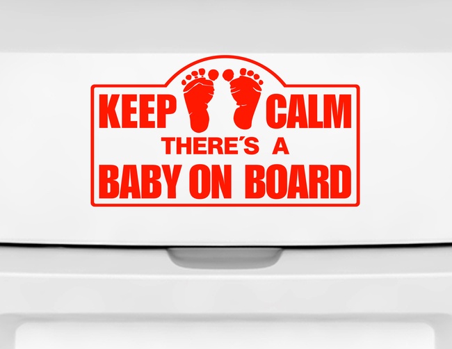 Keep calm there's a baby on board! Getreu nach diesem Motto wurde auch unser Autoaufkleber gestaltet. Mit diesem Motiv zeigst Du allen Verkehrsteilnehmern, dass Du nicht alleine fährst. Der Autoaufkleber Keep Calm Baby on Board, besteht aus einem süßen Paar Babyfüßchen und modernen Textzeilen. Gerahmt wird das Ganze von einer umlaufenden Kontur in Schild-Form.