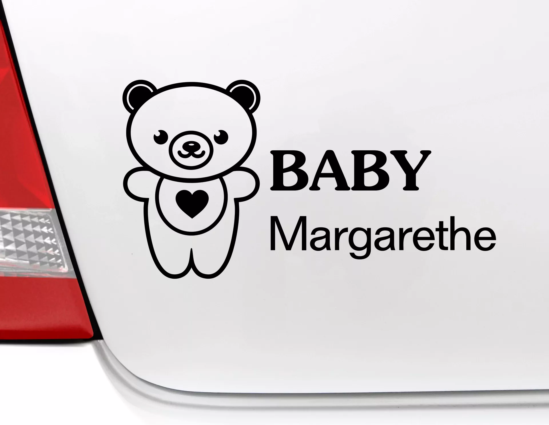Wenn Du ein verspieltes Design suchst, bist Du mit unserem Autoaufkleber "Kuschelbär Kalle" bestens beraten. Unser Bärchen im Comic-Style zaubert nicht nur Dir und Deinem Sprössling, sondern auch jedem Betrachter ein Lächeln auf die Lippen. Das Design bietet außerdem genügend Platz für einen individuellen Namen.