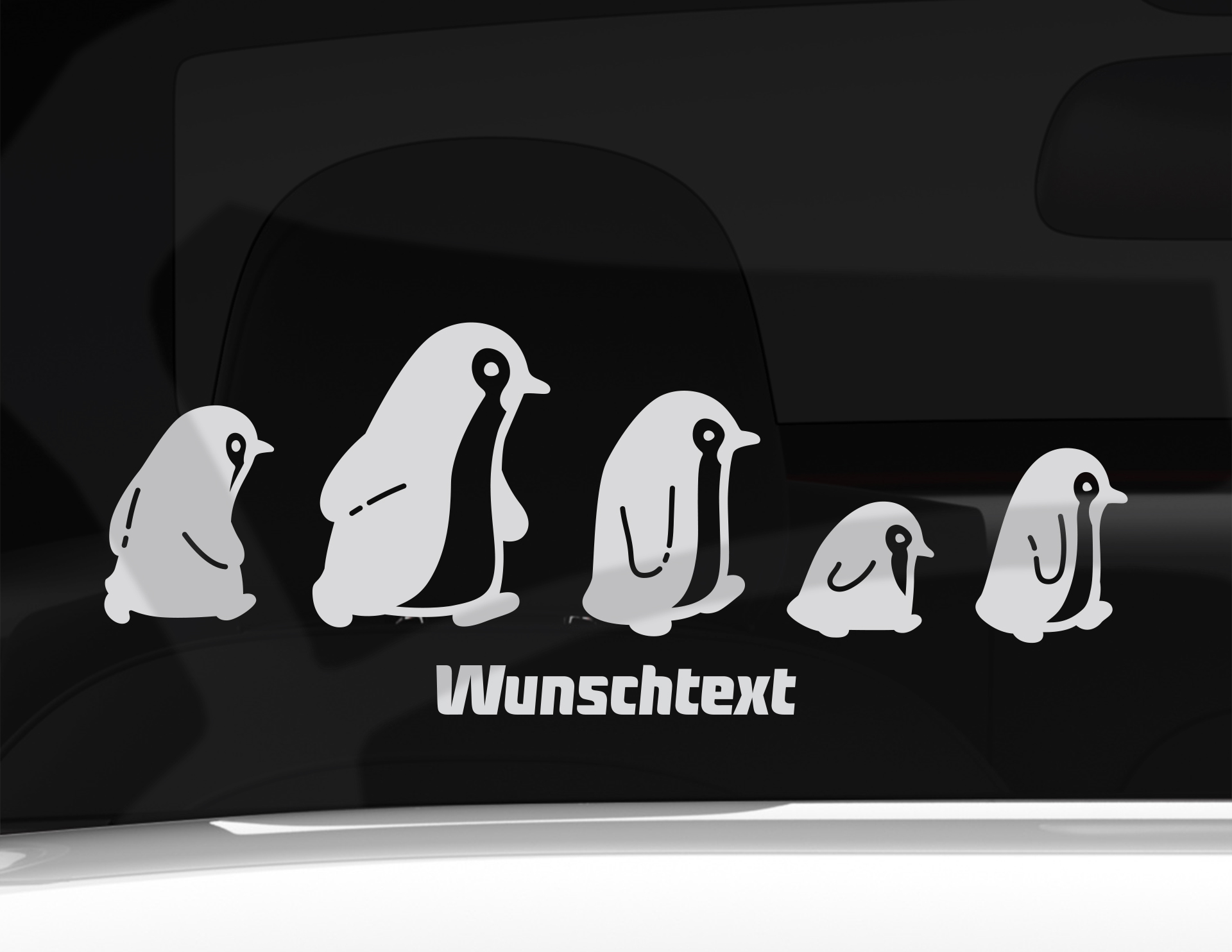 In einer Reihe! Kommt Familie Pinguin daher und macht selbst vor Heckscheiben, Türen oder Lackflächen nicht halt. Denn diese süßen Frack-Träger watscheln einfach drauf los und lassen sich auch nicht von Eisbären, Schnee oder Kälte abschrecken. Unser Tipp: Der Autoaufkleber Pinguin Familienausflug hat genug Platz für Wunschnamen und kann außerdem editiert werden – je nachdem wie viele Familienmitglieder es gibt. Einfach zuschneiden und fertig!