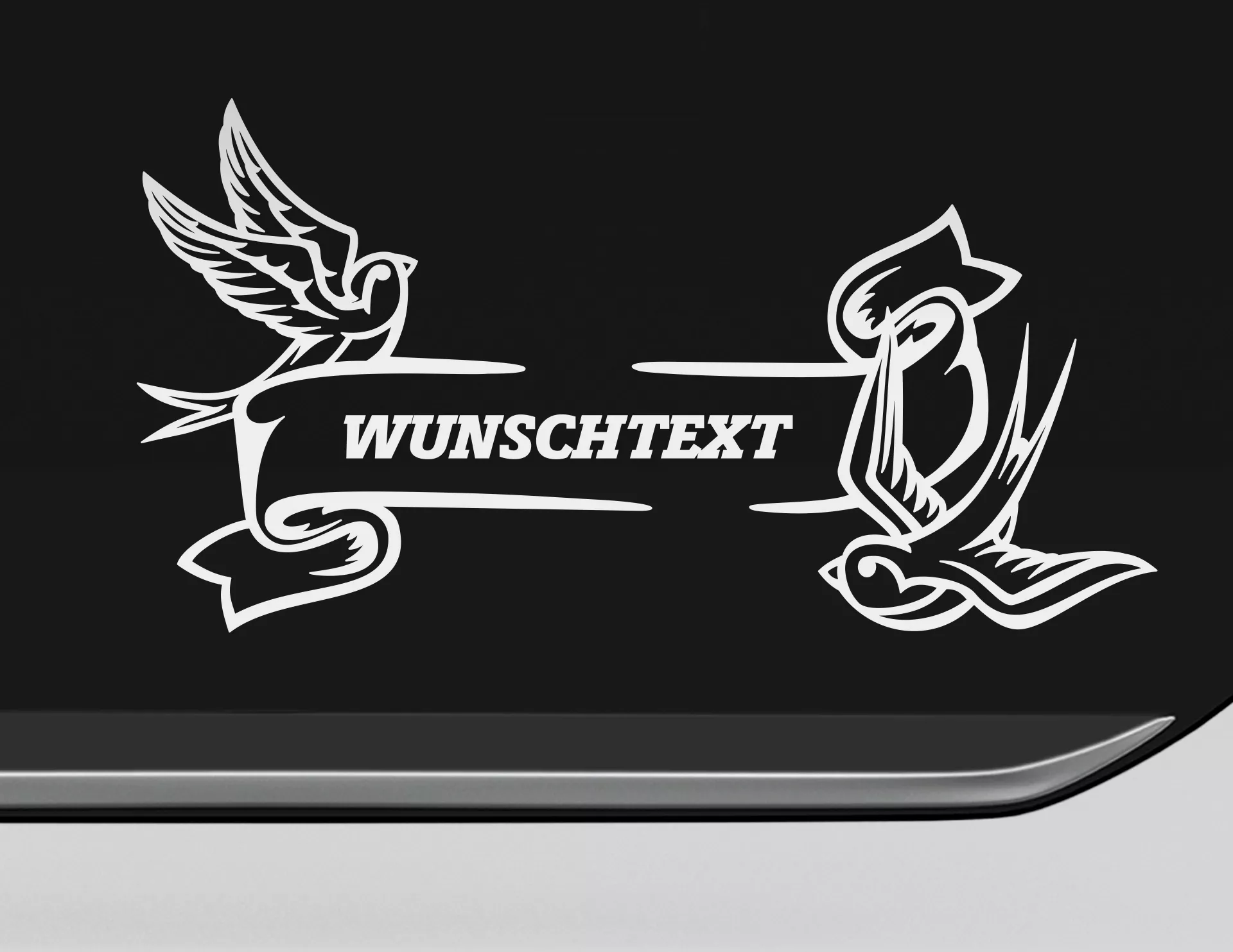 Infos & FAQ für Autoaufkleber Schwalben mit Banner