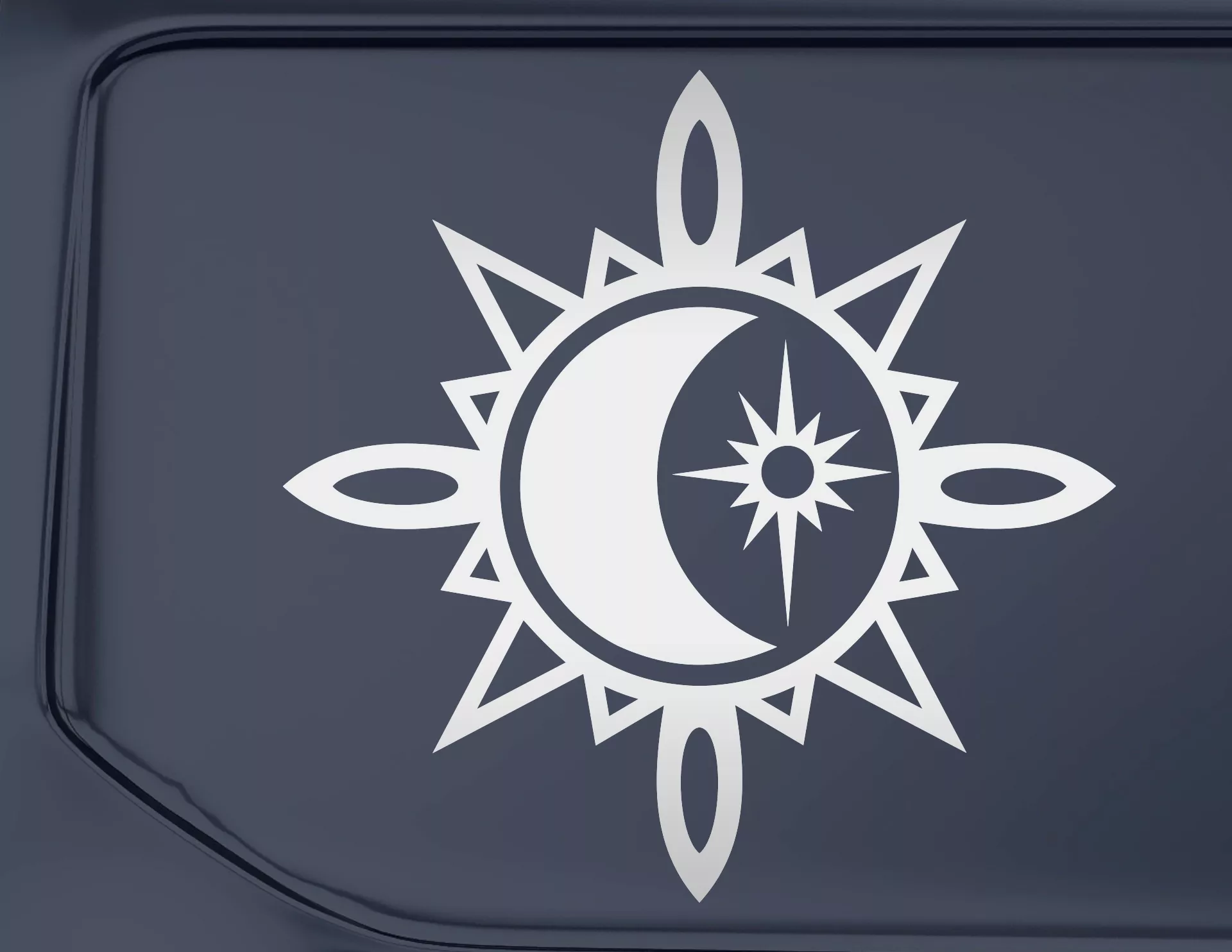 Spirit of Nature: Autobeklebung „Astro Compass“ für alle Outdoor-Fans und Sternengucker. Wohin der nächste Pfad führt? Ganz klar, zum Beobachten von Sonne, Mond, funkelnden Sternen und der Wesen der Nacht.
