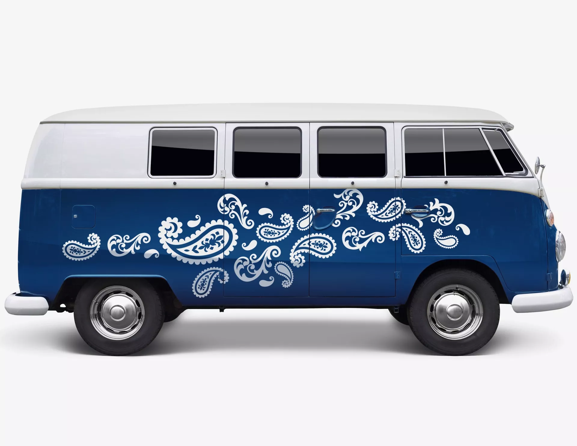 Autos haben blanke Lackflächen, einfarbig und monoton. Da sollte man doch eine spannende Alternative haben, oder?! Hier ist der Autoaufkleber Big Paisley: Einfach das Auto, den Van oder Campingbus mit dem opulenten Muster bekleben und alles schön aufpeppen!
