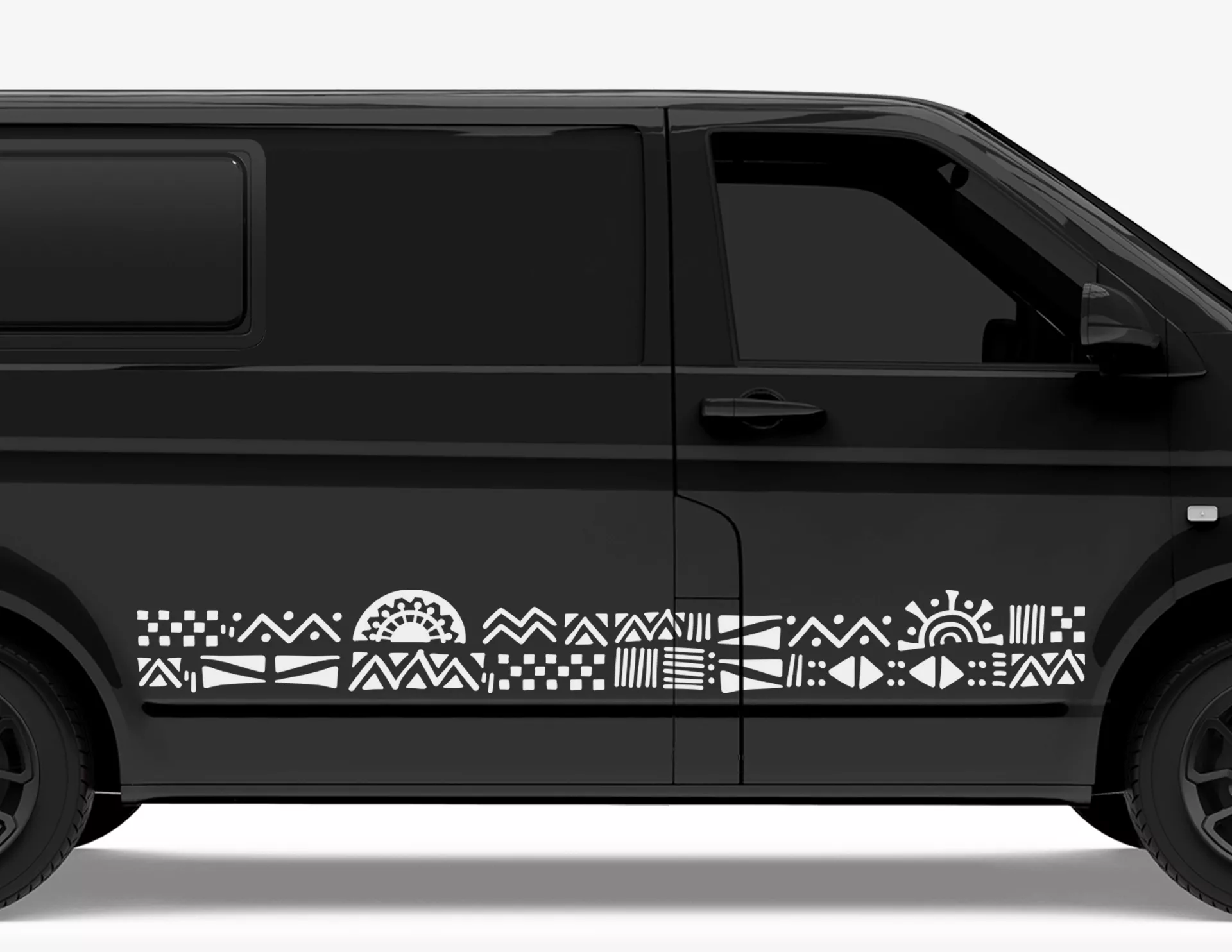 Tradition und Kulturenvielfalt: Im angesagten Ethno-Style kommt das Band der Kulturen daher, welches mit indigenen Mustern viel Weltenbummler-Flair erzeugt. Die handgezeichneten Formen erinnern an die Ornamente der Inka, Azteken und Navajo und an Elemente afrikanischer Stämme. Der Banner verziert Camper-Van oder Wohnwagen mit wenig Aufwand und verleiht dem Fahrzeug so ein weltgewandtes Aussehen.