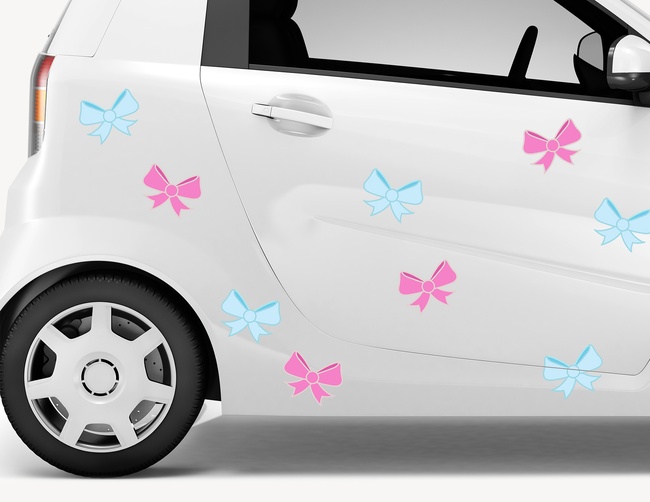 Die Antwort auf die Frage nach Junge oder Mädchen interessiert alle werdenden Eltern und Großeltern gleichermaßen. Mit unserem Autoaufkleber "Fancy Bow Ties", kann die Spannung noch erhöht werden, während das kleine Geheimnis spazieren fährt und die niedlichen Schleifen in Himmelblau und Rosa munter über Deinen Wagen tanzen. Auch wenn sich kein Nachwuchs ankündigt, sind Schleifen immer en vogue und eine zuckersüße Dekoration für jedes Fahrzeug.
