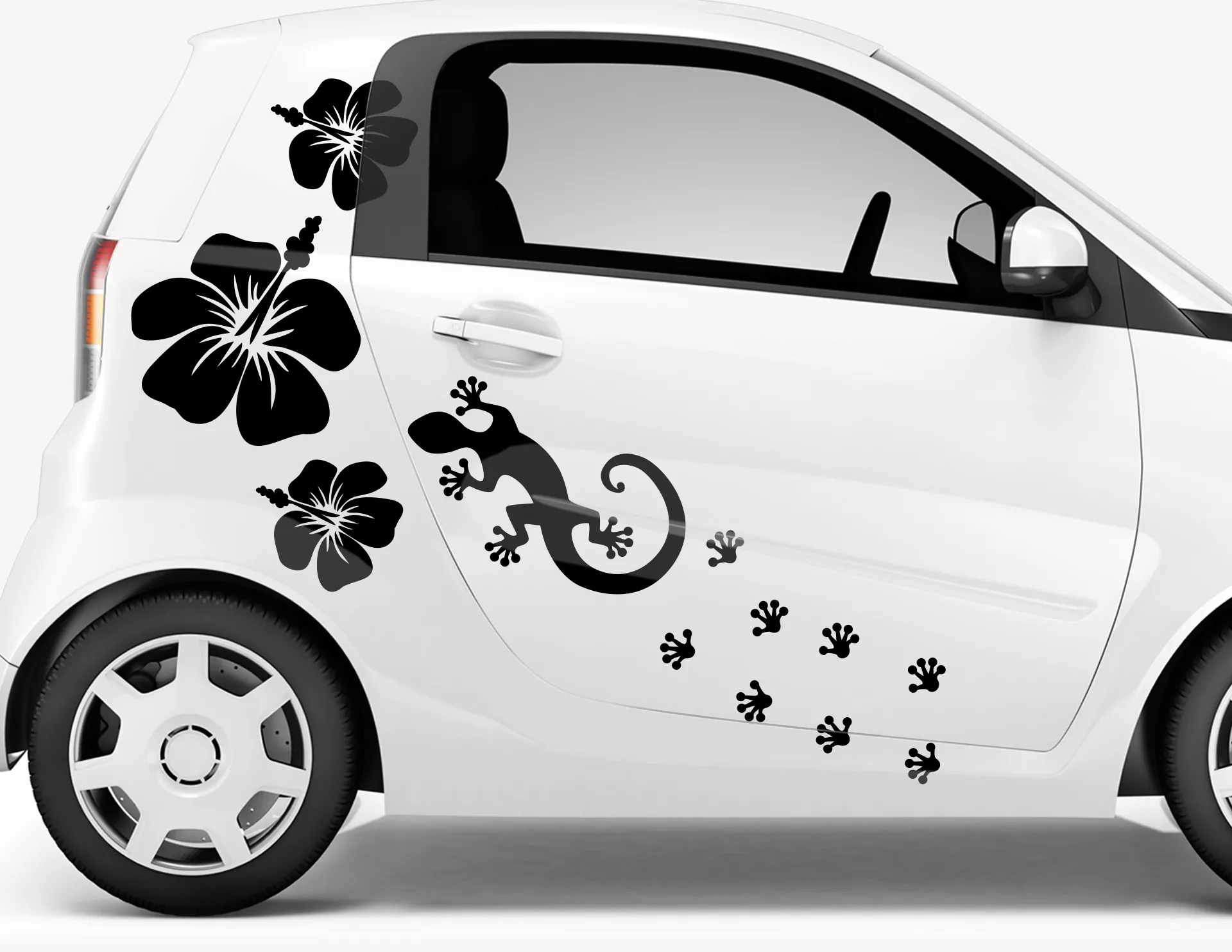 Anleitung für Autoaufkleber Gecko loves Hibiskus
