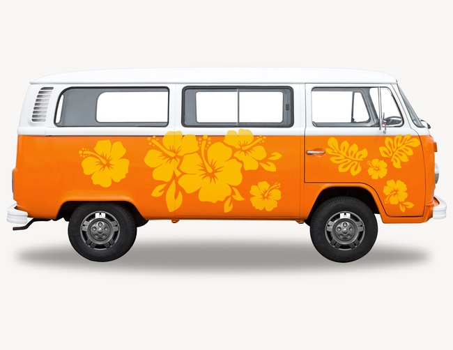 Es muss nicht immer Hawaii oder die Südsee sein – auch in unseren Breitengraden können wir in tropische Stimmung kommen. Das Autosticker Happy Hibiscus samt vieler Hibiskus-Blüten, verwandelt Dein Fahrzeug in einen floralen, exotischen Surfer-Bus. Jetzt müssen nur noch Sonne, Wellen und ein Surfbrett her… Aloha!