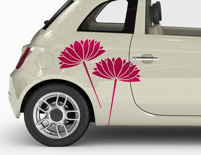 Sie leuchten in den schönsten Farben und besitzen eine einzigartige Blütenform: Wasserlilien. Die großen Blüten-Fächer unseres Autoaufklebers Wasserlilien Hanako sind von Japanischen Kimono-Mustern inspiriert und besitzen einen reizvoll schlichten Charme, der jeden Blumen-Fan betört.