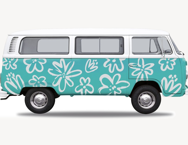 Dieses kreative Blumenmeer verwandelt Deinen Wagen in ein rollendes Kunstwerk. Autoaufkleber Wilde Wunderwiese mit handgezeichneten Blüten in vielfältiger Auswahl.