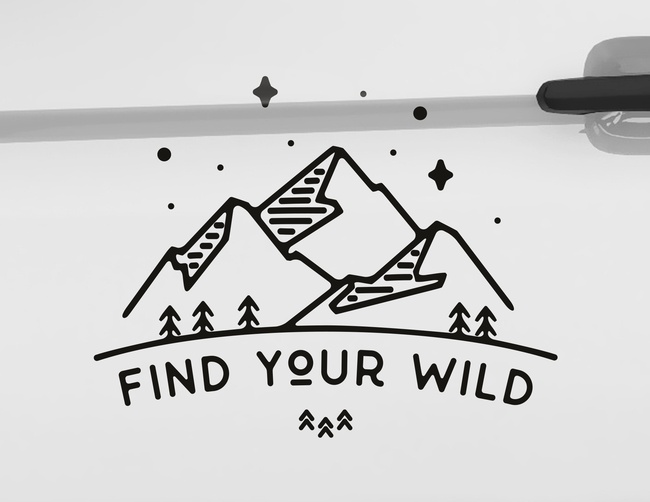 Du stehst auf Camping, nächtliche Lagerfeuer und Wandern draußen im Freien? Oder Mountainbiking, Paragliding und Wildwasser-Rafting in der rauen Wildnis? Der Motiv-Aufkleber 'Find Your Wild' mit Wald und Bergwelt, Sternen und Punkten, illustriert in feinen Linien, zeigt aller Welt, dass Du Deine Passion auslebst und Dich gerne mit der Natur einlässt. Wer weiß, vielleicht hilft Dir unser Design sogar dabei, Gleichgesinnte zu finden für ganz neue Erfahrungen? Autoaufkleber "Find Your Wild"!