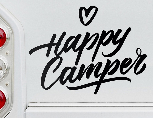 Da kommt die gute Laune schon fast von selbst. Unser Autoaufkleber "Happy Camper Heart" darf dabei nicht fehlen, drückt er doch genau diese Lebensfreude auf dem Wohnmobil, Camper, Bulli oder Van am besten aus.