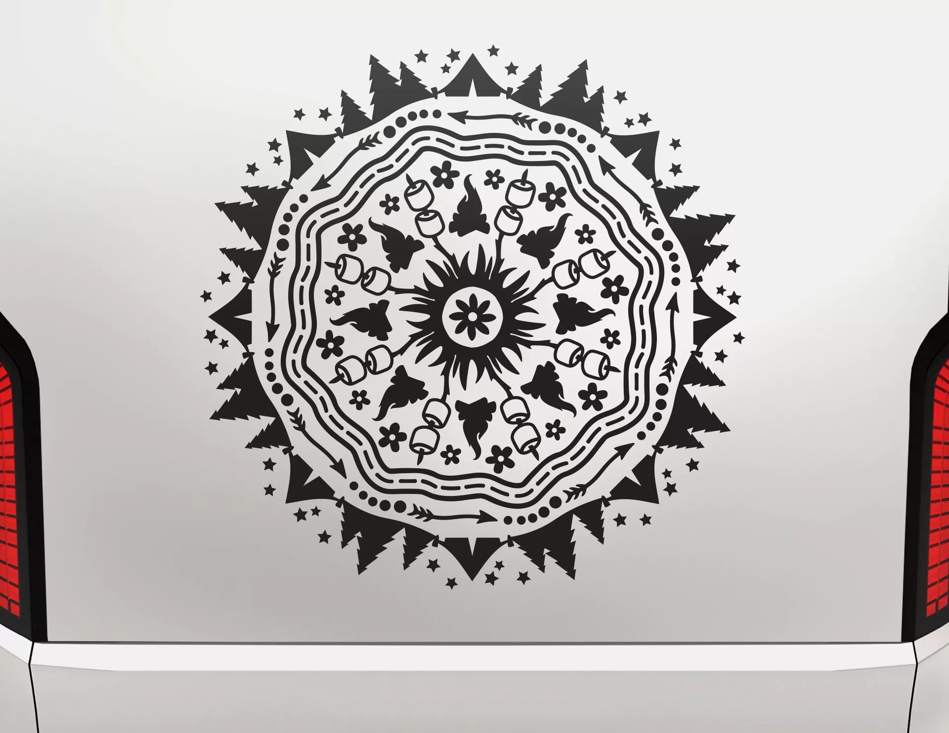 Schmeckt nach Marshmallows und großer Freiheit: Autoaufkleber Camping Mandala macht hungrig auf den nächsten Outdoor-Urlaub.