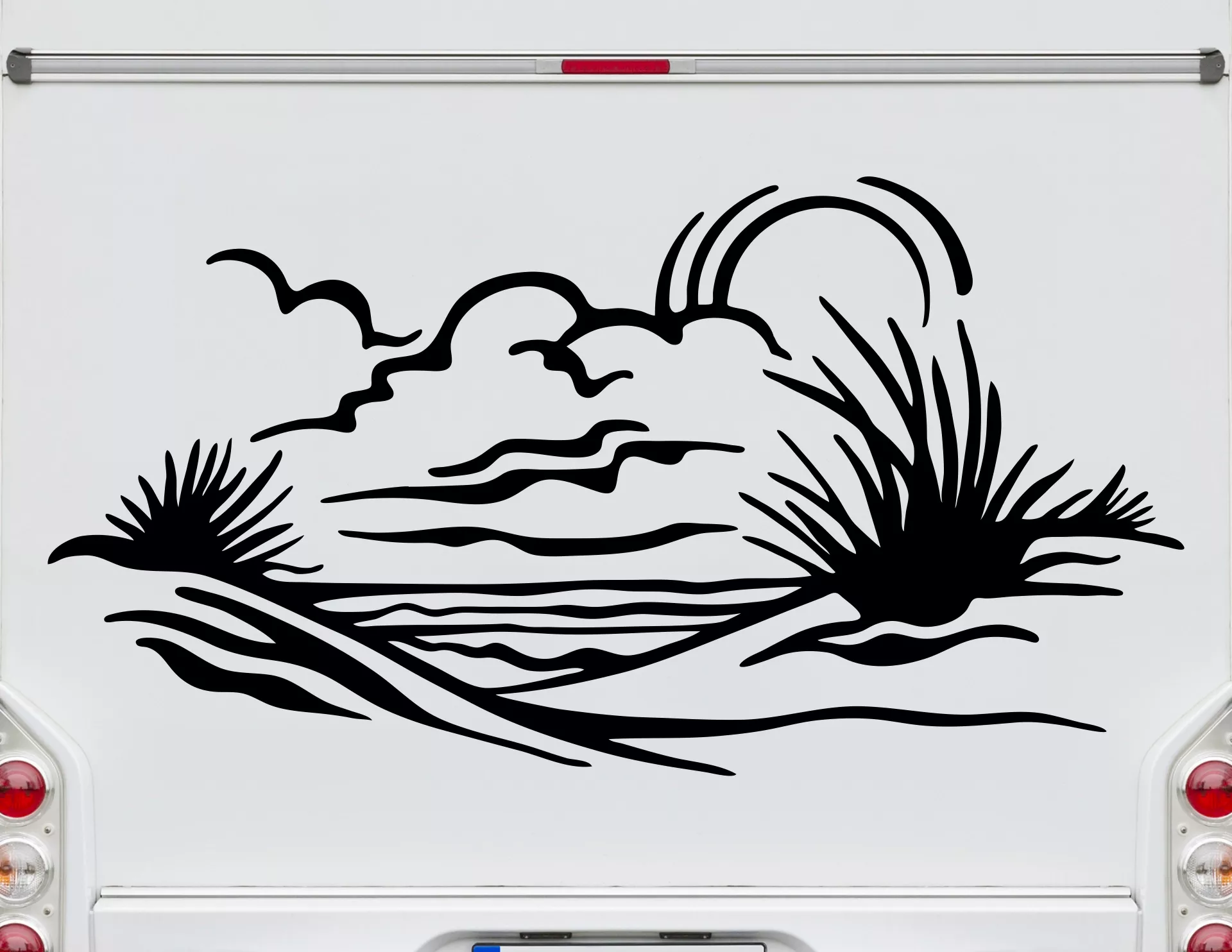 Barfuß durch den Sand laufen, über einem die Sonne und nichts als frische Meeresluft um einen herum… Was könnte schöner sein als ein Tag am Strand? Viele schöne Tage am Strand! Zum Glück gibt es zahlreiche Zeltplätze in unmittelbarer Nähe zum Meer, auf denen man auch mal einen ganzen Sommer verbringen kann. Diese Sehnsucht weckt unser Autoaufkleber "Strandaufgang" mit Dünen, Sandstrand, Schilf, Sonne, Wolken, Wind und Meerblick, der nicht nur auf Campingmobilen oder Wohnwagen gut platziert ist.