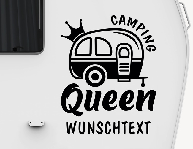 Zeig der Welt Deine Leidenschaft fürs Camping mit unserem Autoaufkleber Camping Queen. Der süße Wohnwagen mit Krone, versehen mit dem Schriftzug "Camping Queen", ist ein echter Hingucker. Zusätzlich gibt es die Möglichkeit, Deinen individuellen Wunschtext (z.B. Dein Spitzname) unter dem Design hinzuzufügen. Unser Aufkleber ist langlebig, wetterfest und kinderleicht anzubringen. Perfekt für alle stolzen Camping-Königinnen, die ihren Stil zum Ausdruck bringen wollen!
