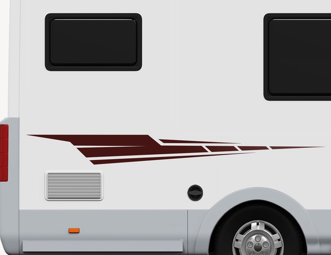 Pfeilschnell wirkt dieser Seitenstreifen für Caravans oder Wohnmobile. Die Konturen sind scharf geschnitten und durch das spitz zulaufende Ende bewirkt das Design eine dynamische Bewegung, von der jedes Fahrzeug schon im Stand profitiert.