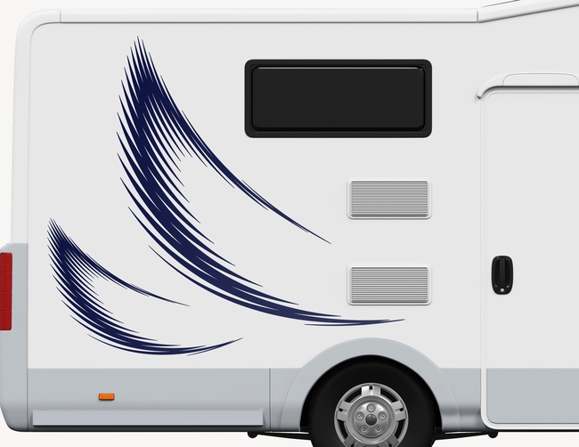 Der Autoaufkleber Feather Fan mit abstrakten Flügeln zum Aufkleben sorgt für die gewisse Leichtigkeit auf Tour und verziert Caravan, Wohnwagen und Campingbus gleichermaßen.