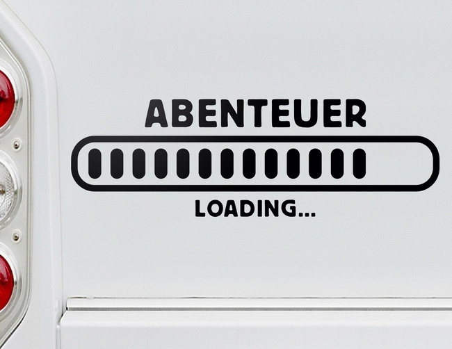 Adventure calling: Autoaufkleber "Abenteuer Loading", mit Ladebalken und Spruch, für aufregend-schöne Reiseerlebnisse.