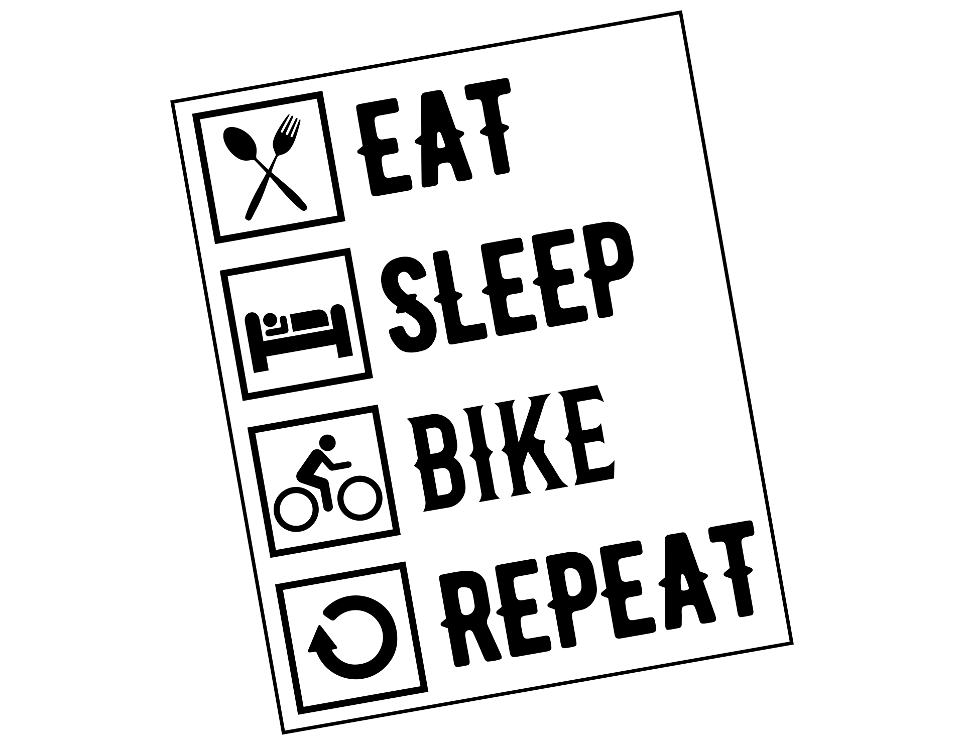 Rauf auf's Rad und rein ins Vergnügen... alles andere ist nebensächlich. Hier werden klare Prioritäten gesetzt: Essen, Schlafen, Radfahren und das Ganze wieder von vorn – Autoaufkleber "Eat Sleep Bike Repeat"!