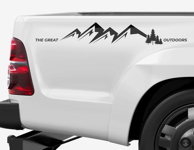 Abenteuerlustige, aufgepasst: Unser Autoaufkleber The Great Outdoors ist ein Muss für alle Natur- und Outdoor-Fans. Das Motiv zeigt eine beeindruckende Bergkette, einen kleinen Tannenwald, und bringt die Faszination der freien Natur auf Dein Auto.
