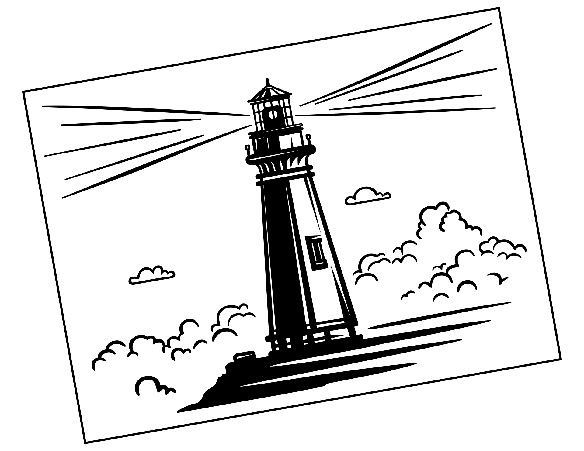Leuchtender Wegweiser: Wohin es wohl geht? Na, an die See natürlich! Der Sticker zeigt einen detaillierten Leuchtturm mit angedeuteten Lichtstrahlen, Mole und vielen Abendwolken am Himmel.