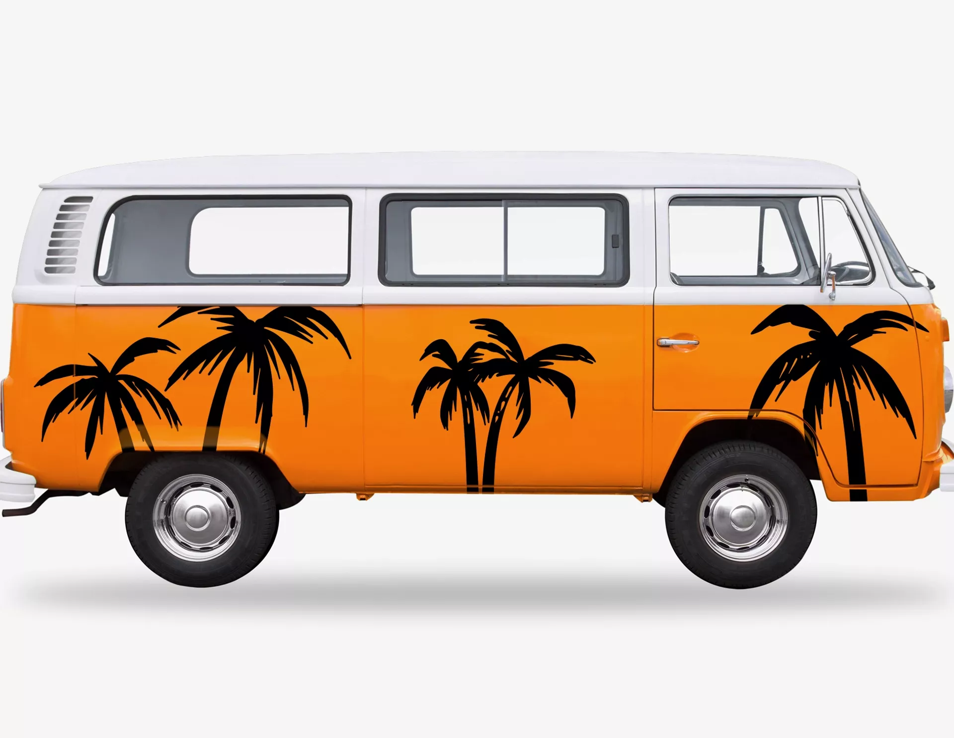 Mehr Urlaubsstimmung geht nicht! Der DIY-Aufkleber mit tropischen Palmen erinnert an heiße Tage am Strand, den letzten Surf-Kurs und macht Lust auf den nächsten Trip ans Meer. Die Palmen des Autoaufklebers lassen sich ausschneiden und frei auf dem Fahrzeug verteilen. So bekommt das Reisemobil einen richtig feinen Urlaubslook.