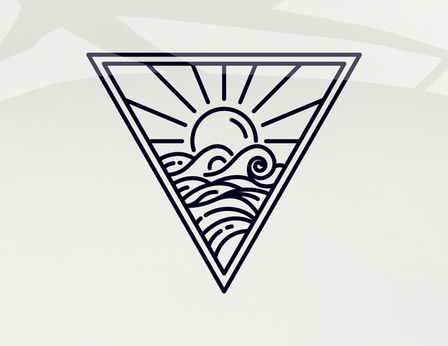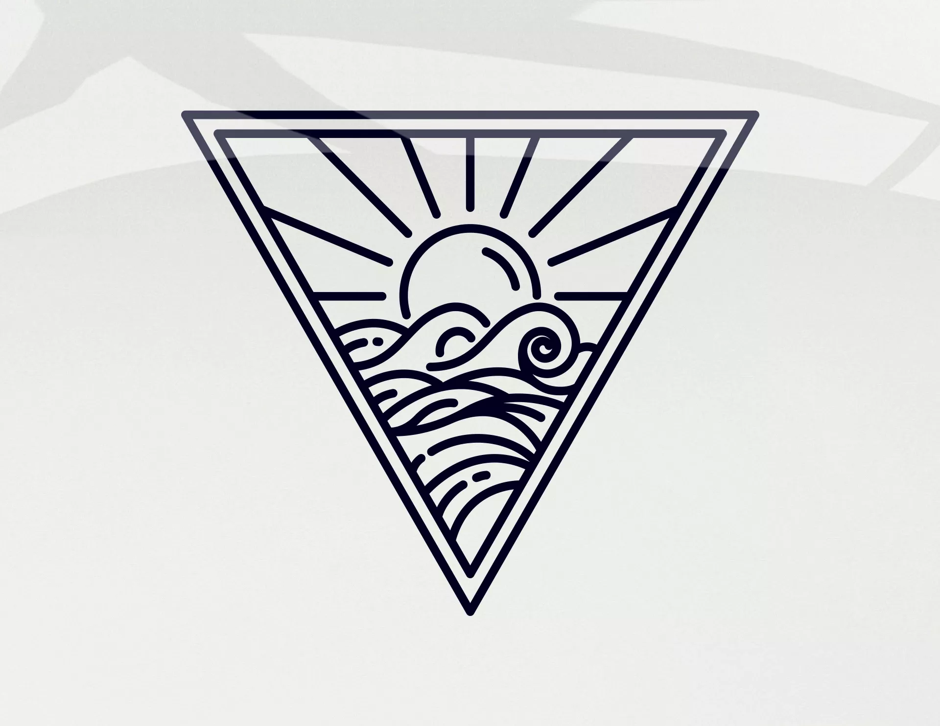Immer der Küste entlang: Autoaufkleber Sunset & Waves Triangle mit Sonnenuntergang am Meer im Dreieck gerahmt, für einen ganz individuellen Look in Deiner Wunschfarbe und Größe.