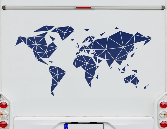 Die Welt bietet so viel zu entdecken und jede Reise ist ein neues Abenteuer. Mit der stilisierten Weltkarte zum Aufkleben – bestehend aus vielen geometrischen Formen – kann man das nächste Reiseziel aussuchen und sich auf Tour begeben. Der Autoaufkleber "Weltkarte Polygon" macht gerade auf Wohnmobil, Van oder Camper viel her und schafft Inspiration für neue Ziele. Vielleicht ist das nächste Urlaubserlebnis gar nicht so fern?!
