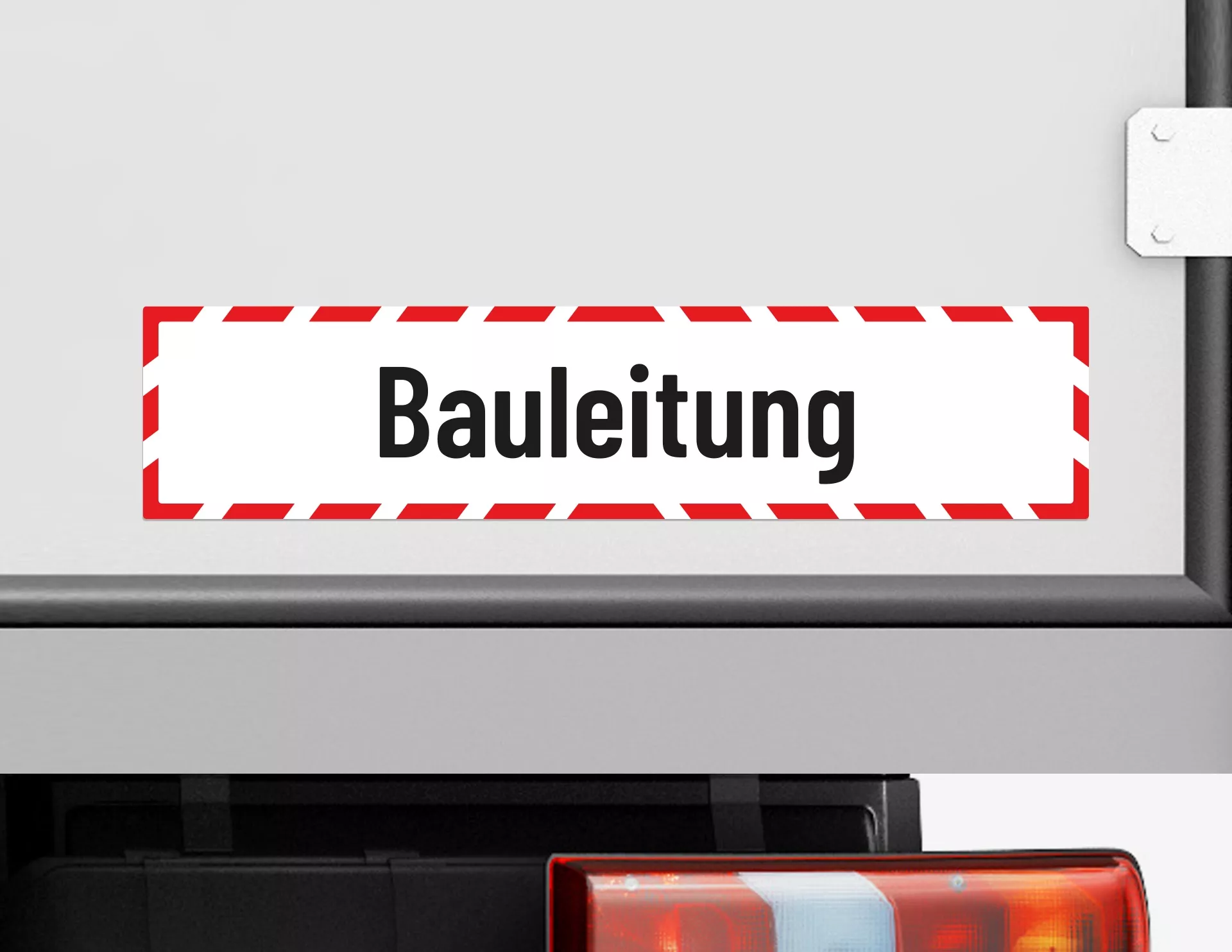 Die Bauleitung ist häufig für viele Projekte im Einsatz und muss rasch zwischen Baustellen wechseln. Da ist es hinderlich und zeitraubend, wenn das Fahrzeug zu häufig vom Sicherheitspersonal überprüft oder sogar von anderen Baustellenfahrzeugen blockiert wird. Mit unserem Autoaufkleber: Bauleitung, signalisieren Du sofort Deine Funktion und vermeidest damit unnötige Wartezeiten.