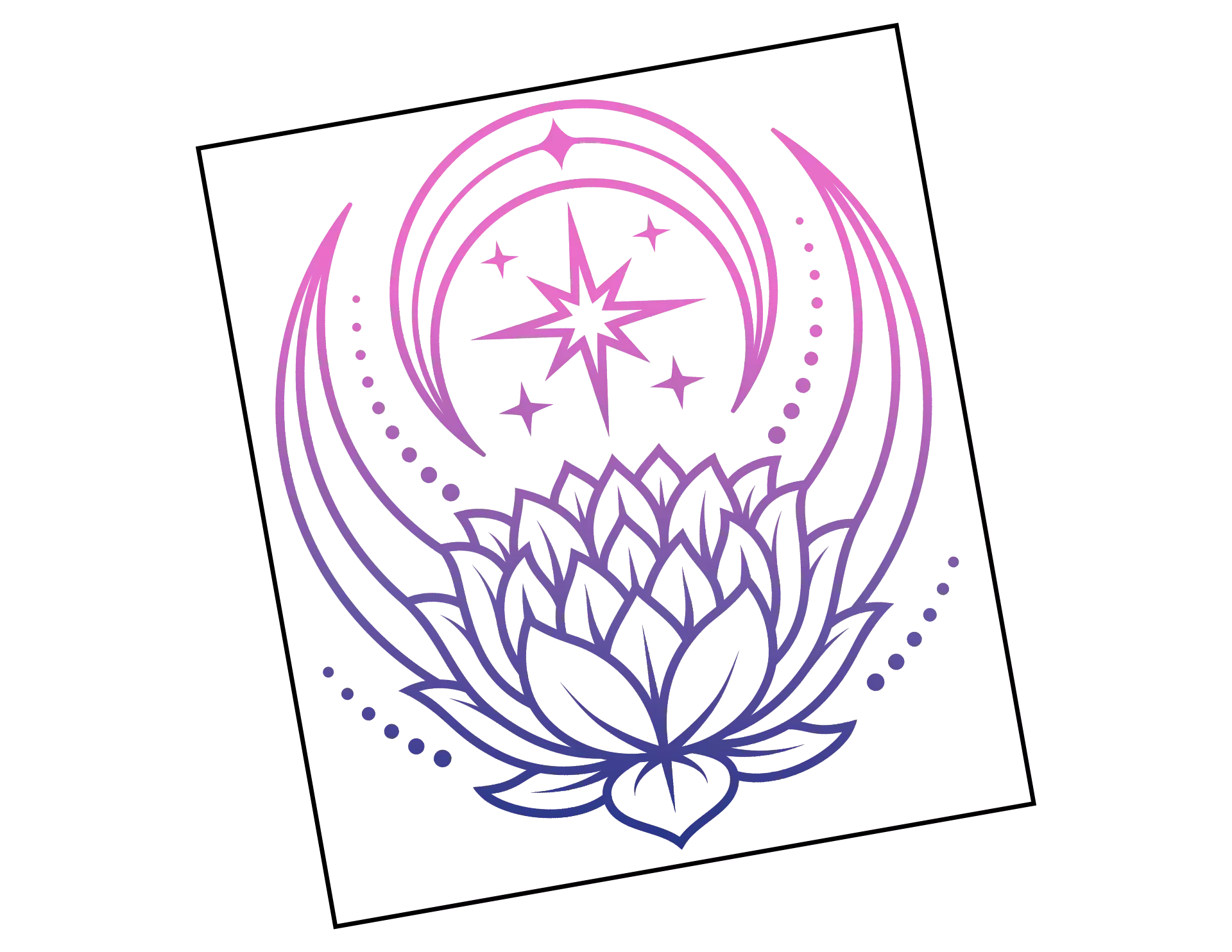 Tauche ein in die mystische Welt unseres Autoaufklebers Mystical Lotus Moon. Dieses farbenfrohe Design vereint die spirituelle Lotusblume, die für Erneuerung und Transformation steht, mit Mond und Sternen.