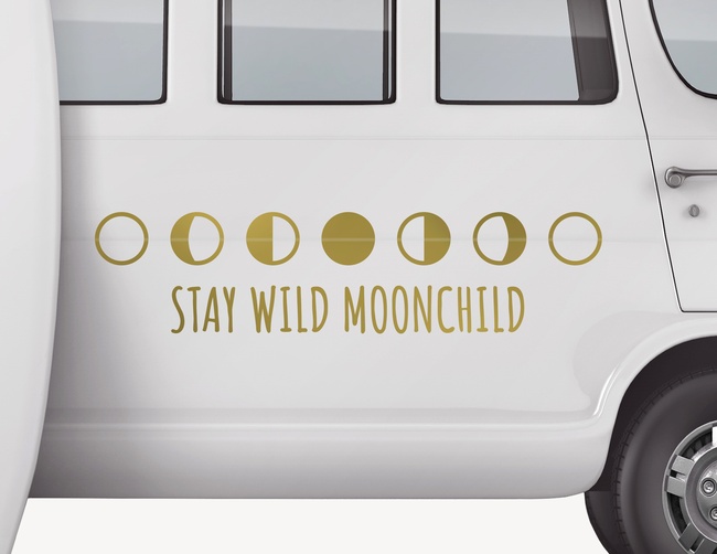 Für Sternenkinder, Freigeister und Naturfans: Der Autoaufkleber "Stay Wild Moonchild" kombiniert 7 Mondphasen mit süßem Spruch – also bleib wild Mondkind.