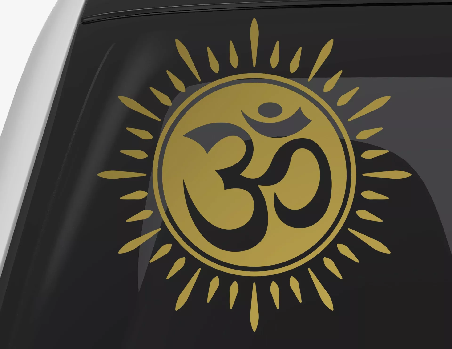 Die Silbe Om als Mantra, Schutzsymbol, spiritueller Begleiter und Glücksbringer auf all Deinen Wegen – Autoaufkleber "Strahlendes Om"!