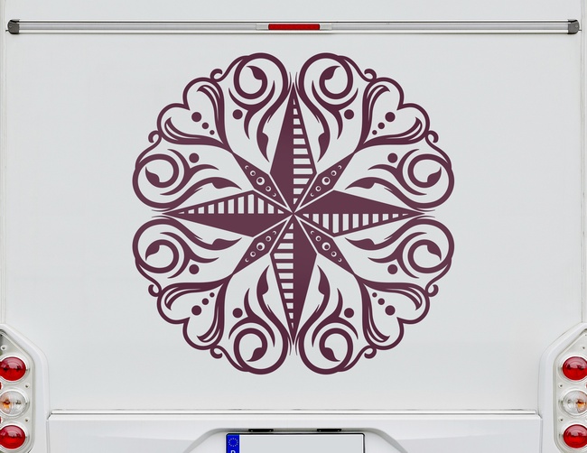 Wohin geht es auf der Tour? Nach Norden oder nach Osten? Nach Süden oder nach Westen? Die Windrose gibt Orientierung und dient zugleich als schöne Dekoration auf Camper, Van oder WoMo. Im Stile eines fernöstlichen Mandalas schmückt der Autoaufkleber Windrose Mandala Circle das Heck, Dach oder die Seiten des Fahrzeugs. Eine Windrose für Individualisten und spirituelle Menschen.