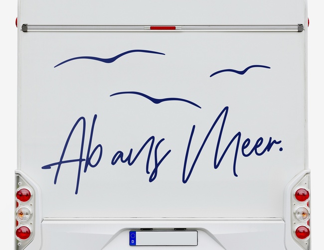 Der Autoaufkleber mit Schriftzug "Ab ans Meer" ist genau das passende Motiv für alle Wasserratten, Wellenreiter und Strandurlauber. Zusammen mit den drei stilisierten Möwen verziert der Aufkleber Bus, Camper oder Wohnmobil – und schenkt maritime Stimmung auf allen Wegen.