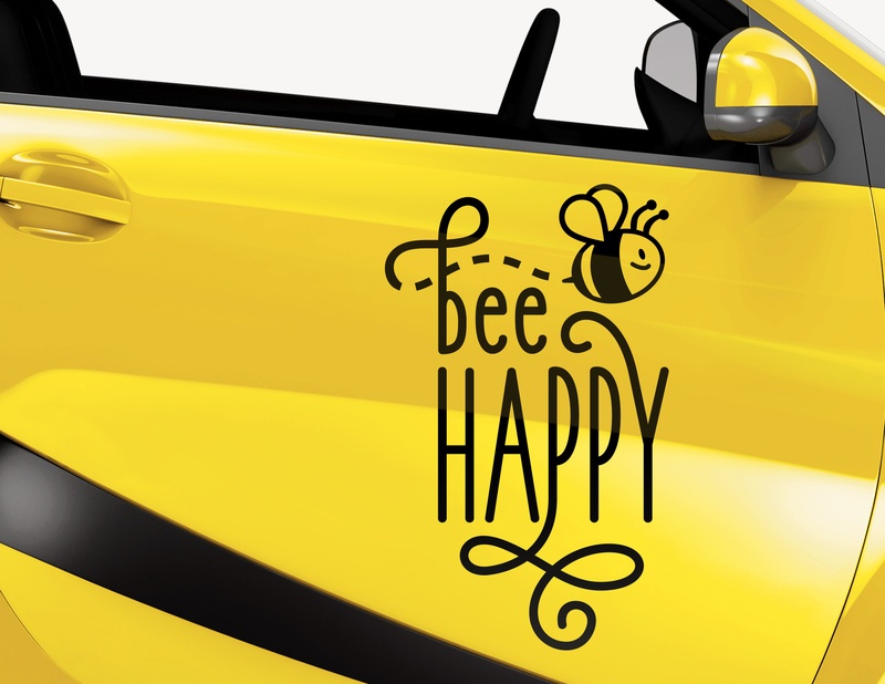 Dein Auto ist so heimelig, dass es fast schon hummelig ist? Dann kleb Dir unseren Autosticker "Bee Happy" auf den Wagen und lass alle daran teilhaben, dass Du glücklich bist. Und süß wie Honig. Und schnell wie eine Biene. Also rundherum happy eben!