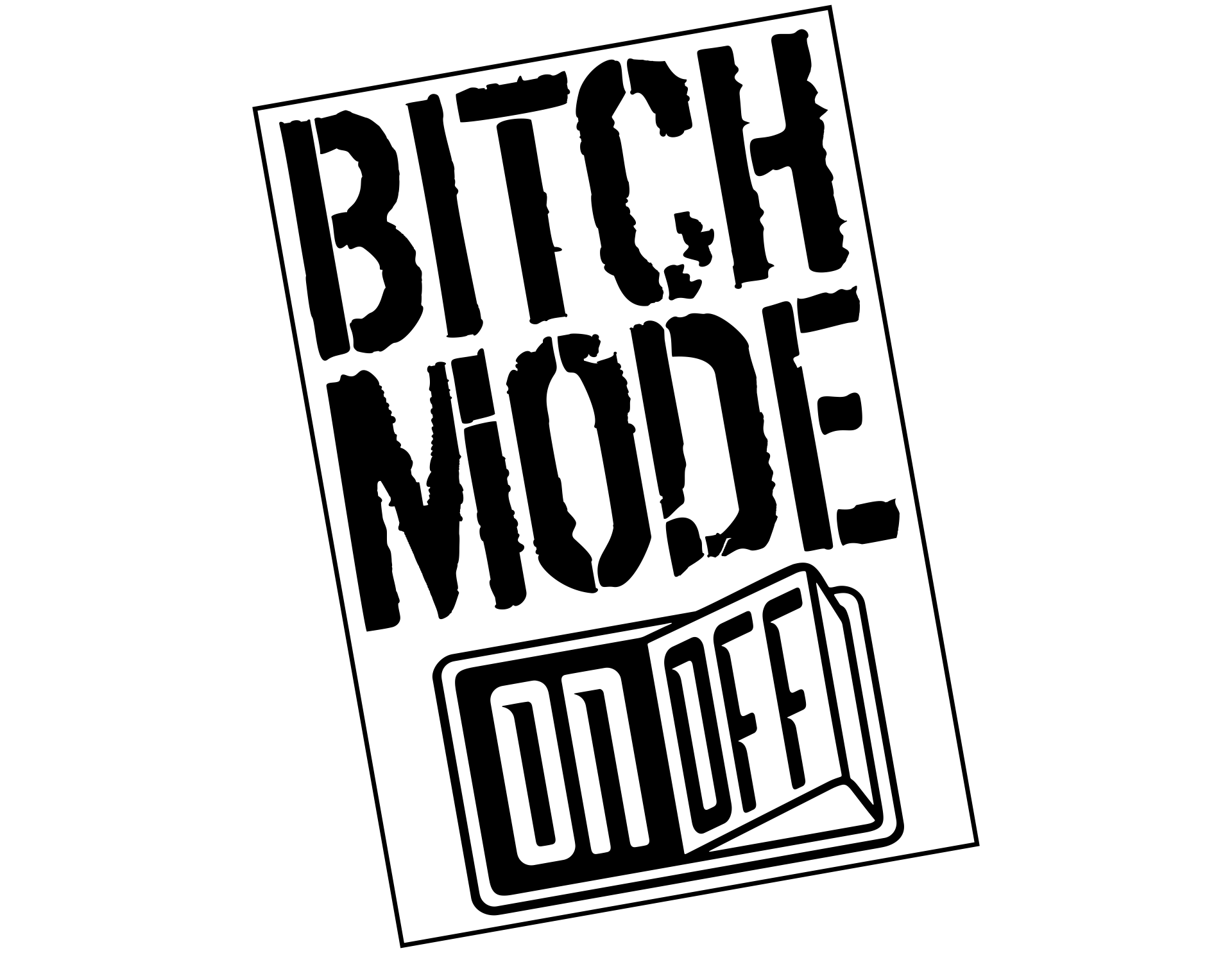 Autoaufkleber "Bitch Mode On" – ein cooler Schriftzug samt stilisierten Ein- und Ausschalter im Grunge-Style illustriert, welcher gleichwohl als GRL-PWR Statement und auch als Warnung zu verstehen ist.