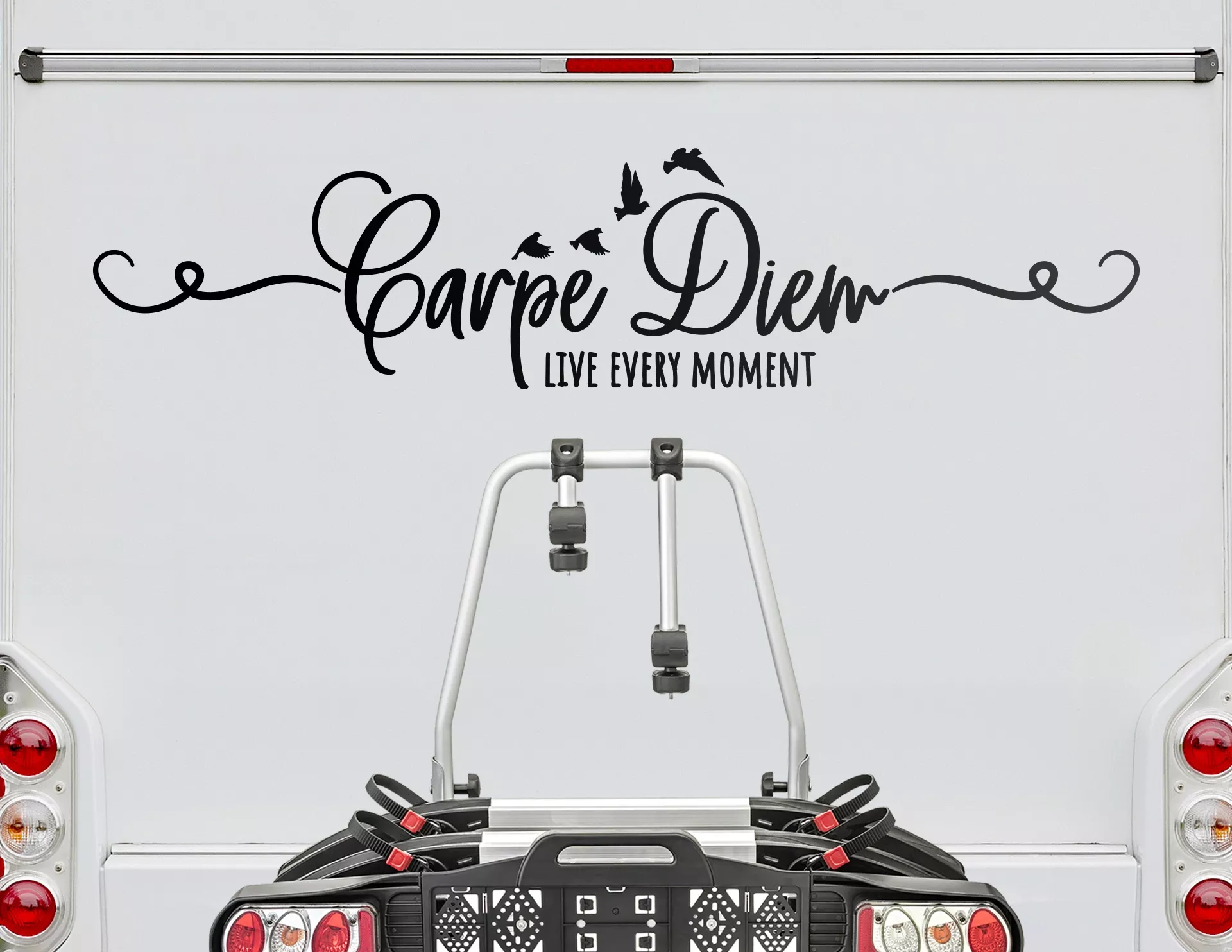 Lebe den Moment und mach Deinen Caravan oder Camper zum Ausdruck Deiner Lebensphilosophie mit unserem Autoaufkleber: Carpe Diem - Live Every Moment.
