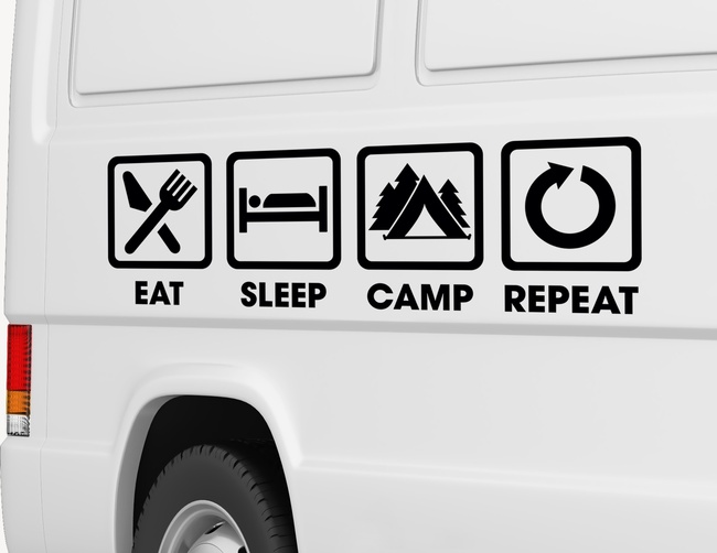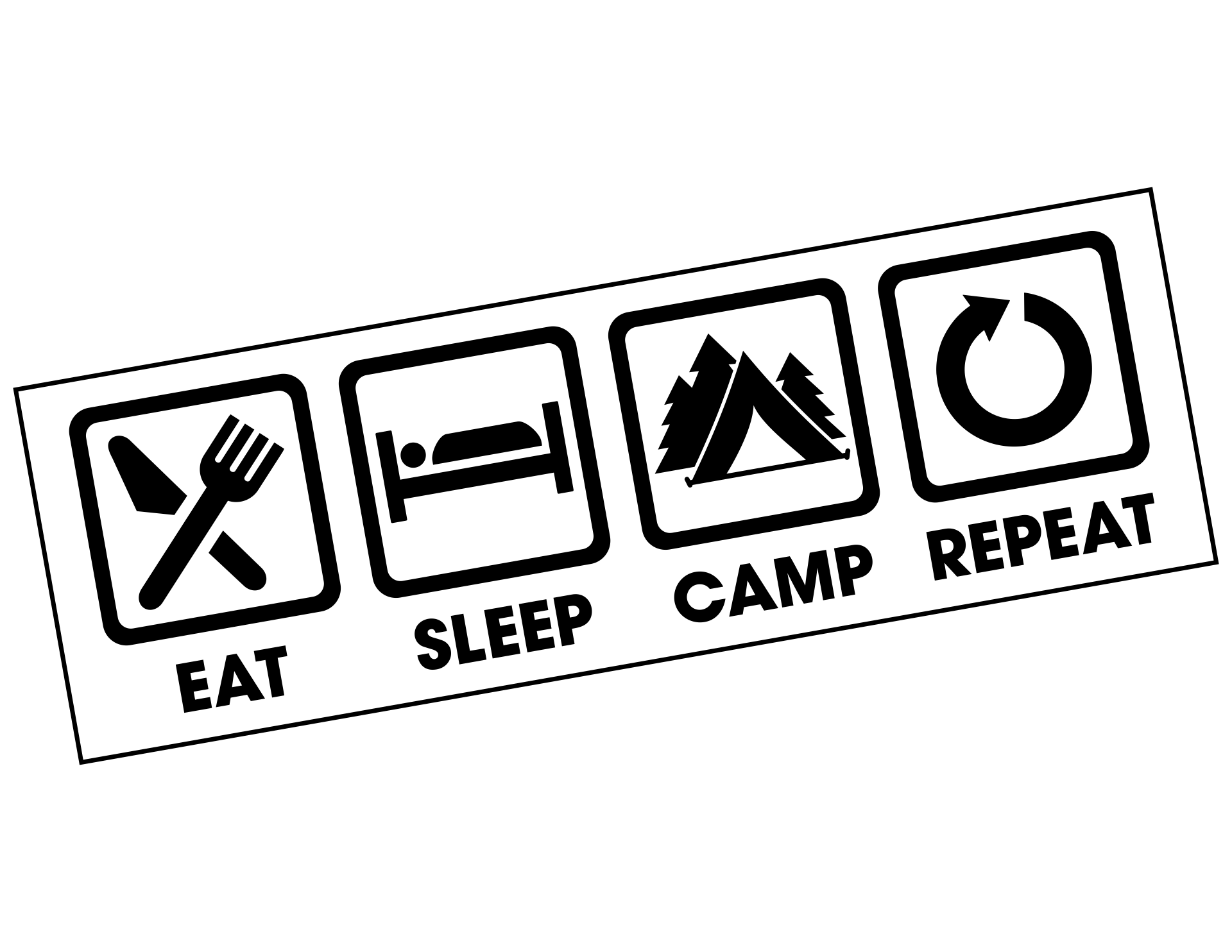 Anleitung für Autoaufkleber Eat Sleep Camp Repeat