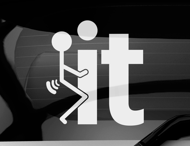 Ach leck mich doch, denkt so mancher im stressigen Straßenverkehr und wünscht sich eine Aussage, die sich auch von außen auf der Karosserie widerspiegelt. Unser Fuck It-Autosticker mit deutlicher Symbolik zeigt allen nervigen Verkehrsteilnehmern einen gereizten Mittelfinger und zugleich eine witzige Grafik, die eben nicht alles akzeptieren will. Das Strichmännchen beim Akt mit dem it verschafft eben einfach mal Luft – und danach geht es einem doch gleich viel besser!