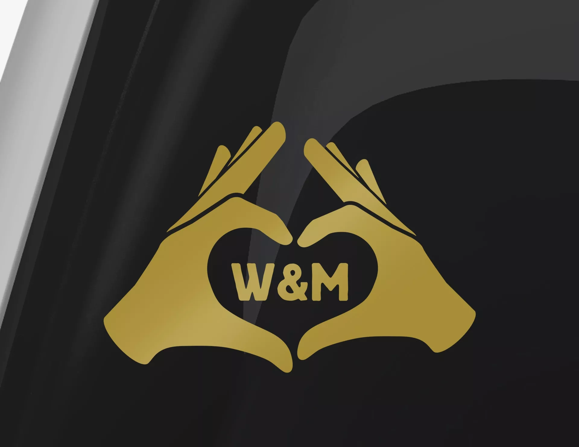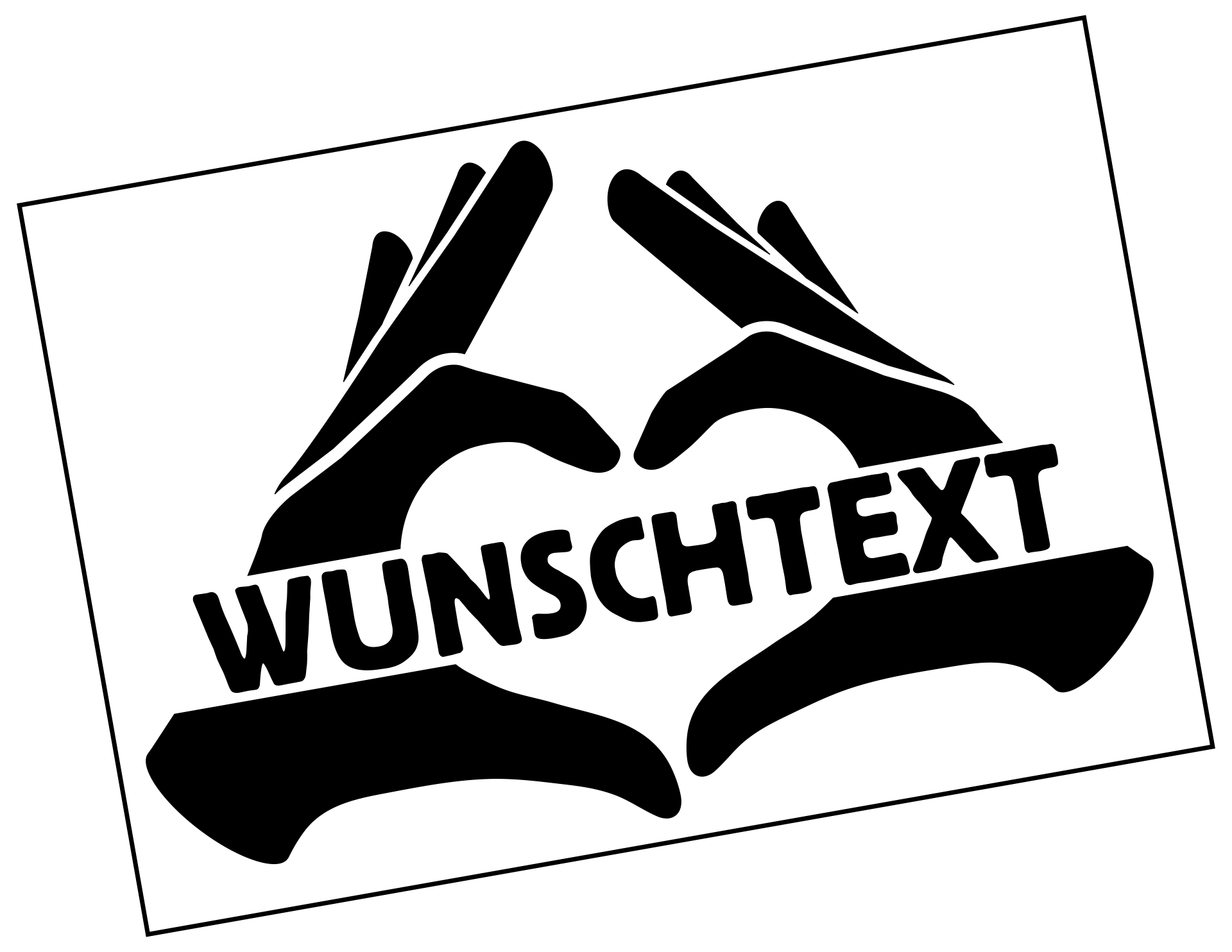 Große Gefühle, ohne Worte: Autoaufkleber Hand-Herz-Liebe! „Love“ geformt aus zwei Händen – diese Geste als Logo für Heckscheibe & Co. kommt ohne Chichi aus, zeigt dafür viel Herz und Deine Wunsch-Initialen.