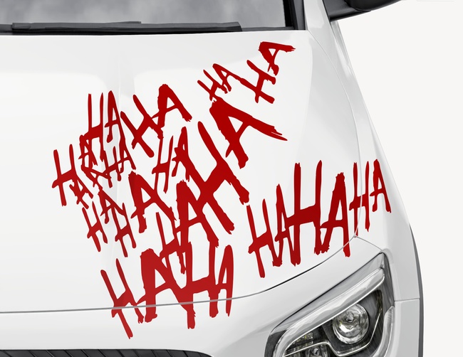 Wer zuletzt lacht: Der Autoaufkleber "Joker's Hahaha" mit zahlreichen ineinander verwobenen ‚Hahahas‘ sorgt auf Motorhaube, Heckklappe oder Stoßstange für verwunderte Blicke und den optischen Kick.
