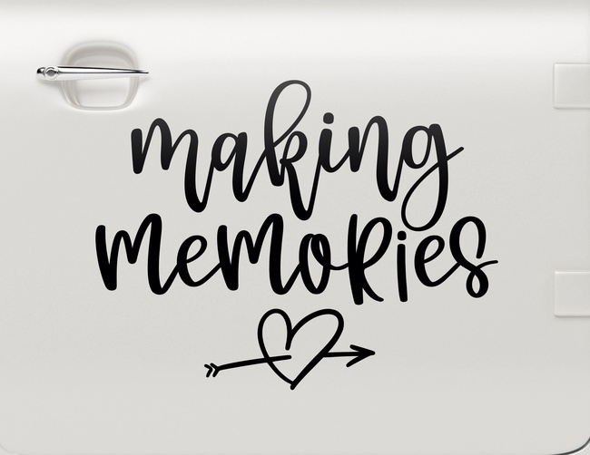 Dieser Spruch passt nicht nur zum Hochzeitstag aufs Auto: "Making Memories" (zu dt. Erinnerungen schaffen) ist schließlich etwas, was wir jeden Tag machen ...