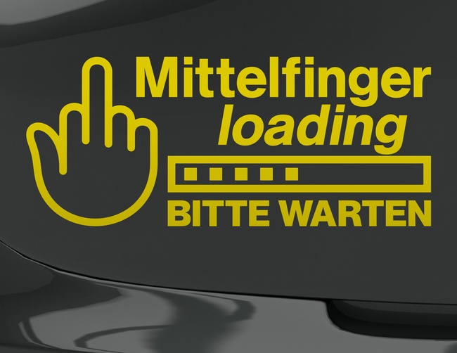 Macht mit Stressern kurzen Prozess: Autoaufkleber "Mittelfinger loading" mit Handgeste, Spruch und Ladebalken.