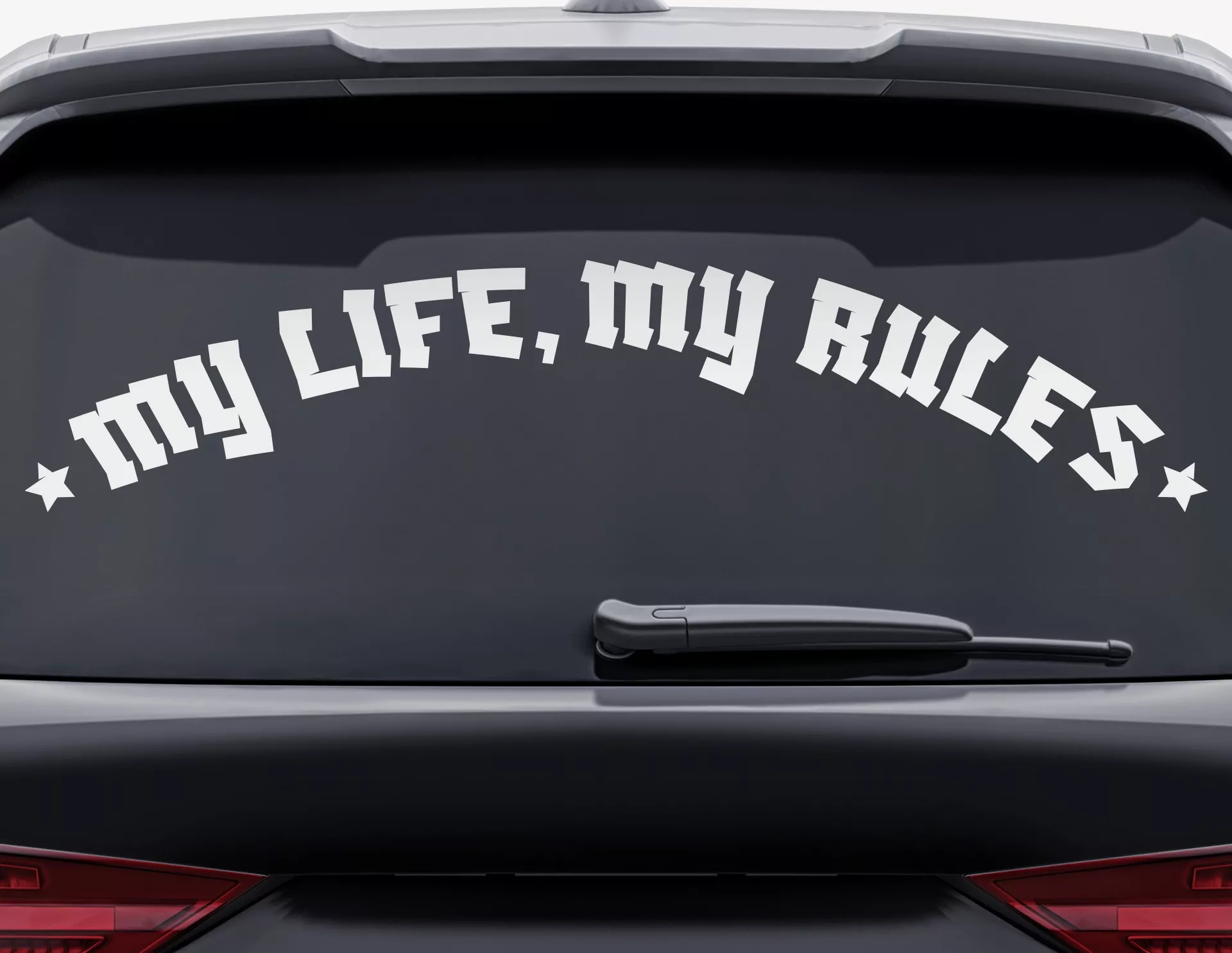 Mein Leben, meine Regeln (my life, my rules): Wortgewaltig und sehr cool - dieser Heckscheibenaufkleber mit Textbanner und Sternen hat den Bogen echt raus.