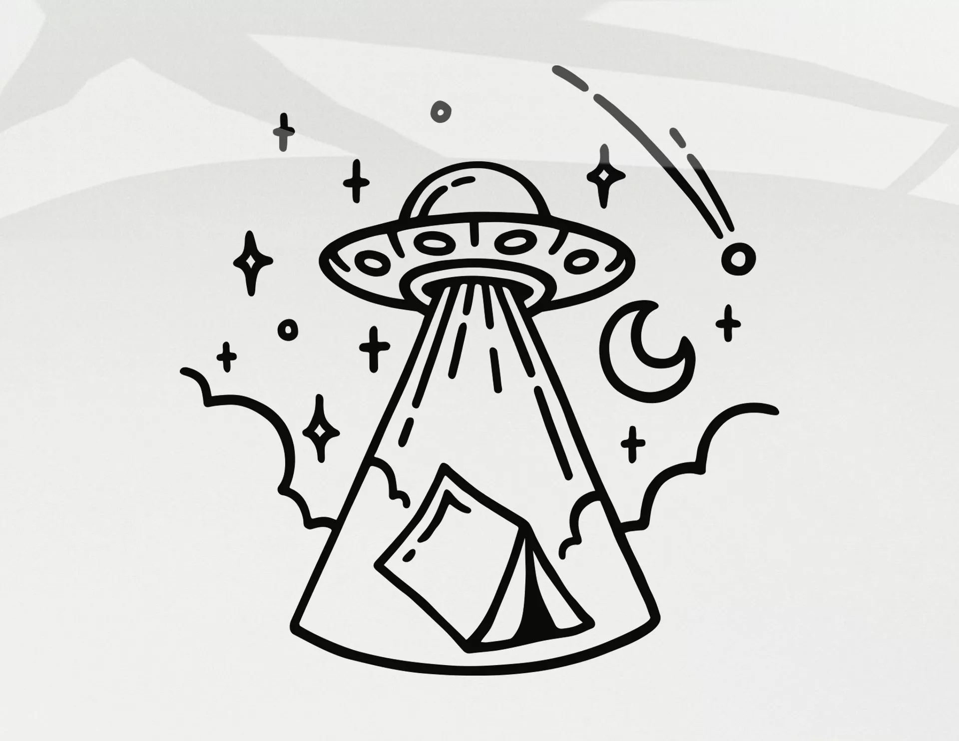 Wie Space-Camping richtig geht, zeigt dieses lustige Design in cooler Linien-Grafik: Unser Autoaufkleber Space Camp UFO.