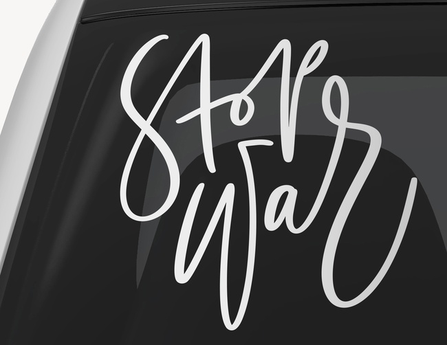 Millionen Menschen auf der Welt sagen: Stop War; stoppt den Krieg! Der Autoaufkleber "Stop War Lettering" macht in geschwungenen Linien deutlich, dass Frieden und Solidarität die einzige Möglichkeit ist...