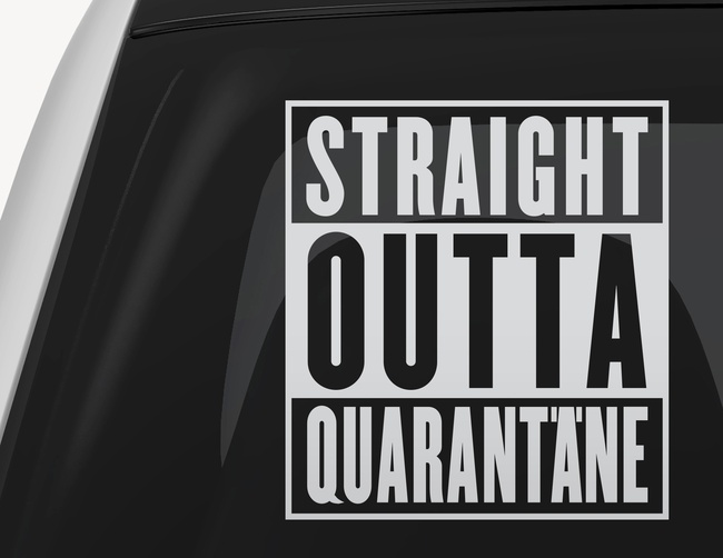 Echt befreiend: Autoaufkleber "Straight Outta Quarantäne" in Anspielung auf das wahre Leben und coolen West Coast Rap aus Los Angeles (Straight Outta Compton).