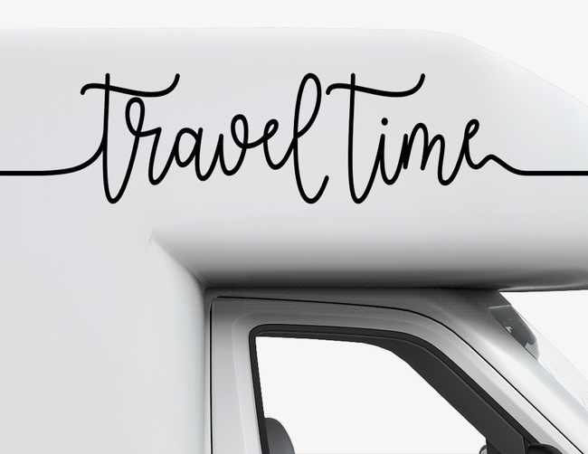 Der Autoaufkleber Travel Time macht Lust auf den nächsten Roadtrip. In schönster Schreibschrift Hand illustriert, lässt sich dieser Sticker vielerorts an Deinem Reisemobil anbringen.