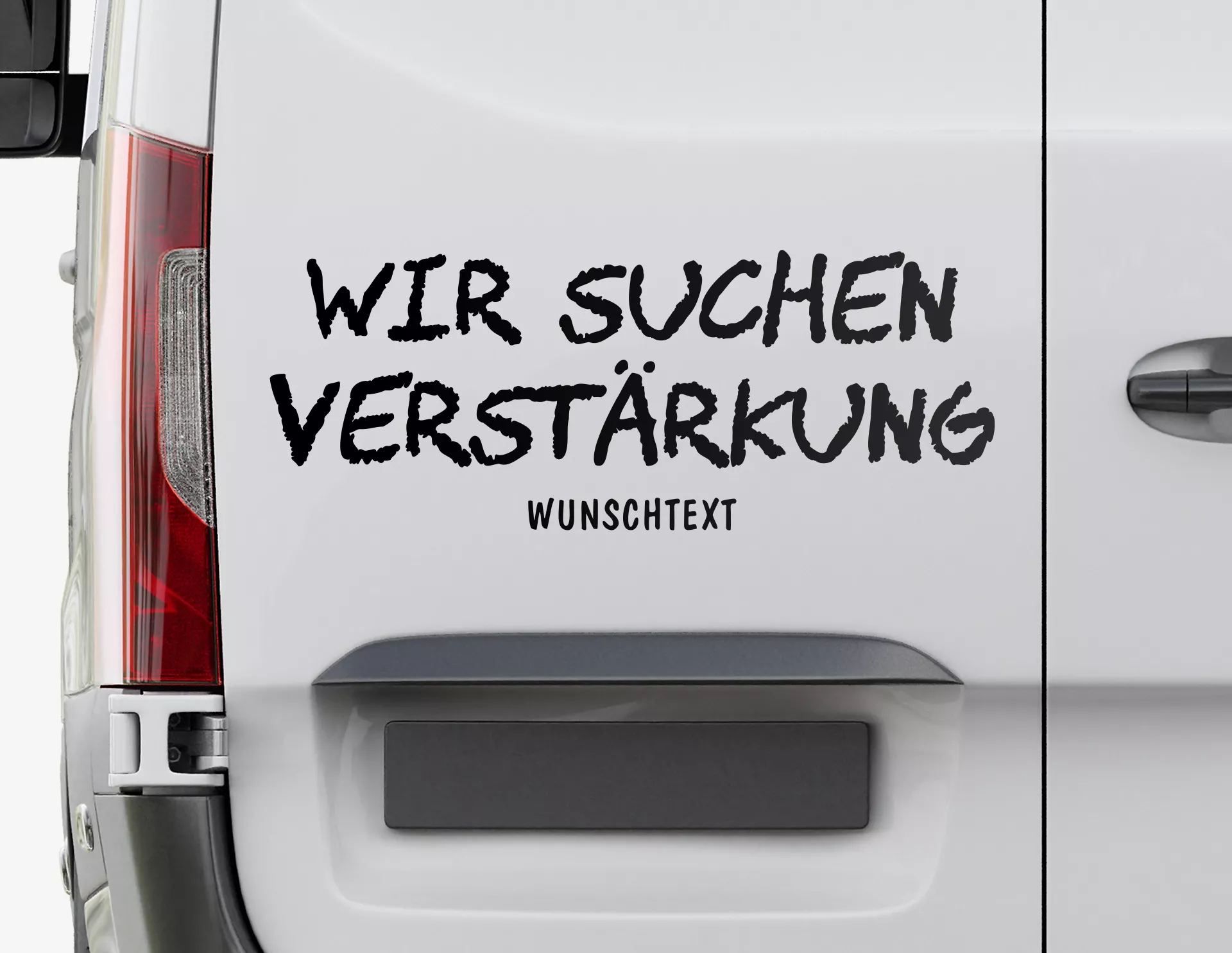 Infos & FAQ für Autoaufkleber Wir suchen Verstärkung Kreideschrift